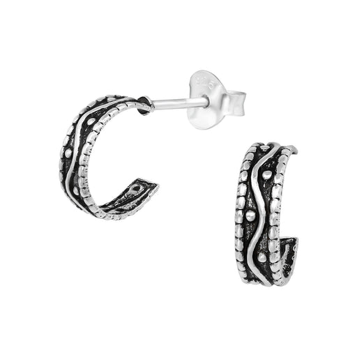 Sterling zilver 925 halve hoepel oorbellen met patroon geoxideerd. Materiaal : 925 sterling zilver Afwerking : Geoxideerd, E-coat Grootte : 10 mm x...