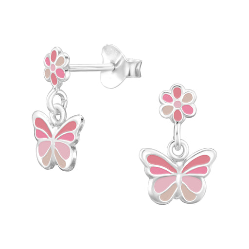 Alle gegevens bekijkenJoy|S - Zilveren bloem met vlinder bedel oorbellen - 8 x 12 mm - roze creme wit zilver - kinderoorbellen