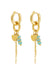 Ibiza style stainless steel - hartje oorbellen met kettinkjes en blauw / turquoise kraaltjes - ip/pvd gold plated.