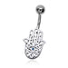 Navelpiercing - sterling zilver 925 Hamsa bedel met blauw kristal. Materiaal Hamsa bedel: Sterling zilver 925 Materiaal staaf: 316L Chirurgisch staal Bewerking: Licht geoxideerd Steensoort: Kristal (blauw) Verpakt in een bijbehorend sieradendoosje van JYC, gereed om cadeau te geven. Ean: 8720661346607 - ks BP-570