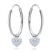 Sterling zilver 925 - 17 mm oorringen met hartje bedel kristal