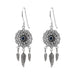 Sterling zilver 925 massieve bloem oorbellen geoxideerd met veren