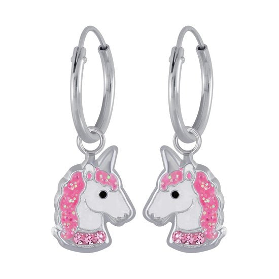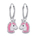 Sterling zilver 925 unicorn bedel oorbellen met roze kristal