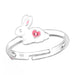 Sterling zilver 925 - konijn ring verstelbaar - wit met een roze hartje met een roze kristalletje - voor kinderen.