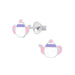 Sterling zilver 925 Theepot oorbellen - glitter wit met roze.