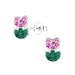 Sterling zilver 925 bloem / tulp oorbellen - roze groen met kristalletjes.