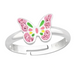 Sterling zilver 925 vlinder ring verstelbaar voor kinderen met roze kristalletjes.