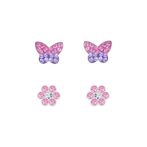 Sterling zilver 925 oorbellen 2 paar: Vlinder met roze en paars kristal, Bloem met roze kristal Materiaal : 925 sterling zilver Afwerking : E-coat...