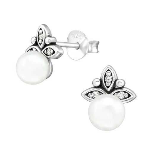 Alle gegevens bekijkenJoy|S - Zilveren parel antiek met kristal oorbellen 8 x 9 mm