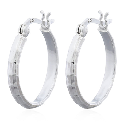 Sterling zilver 925 oorringen met diamond cut bewerking. Diameter oorring: 18 mm Materiaal: Sterling zilver 925 Afwerking: E-coat Verpakt i...
