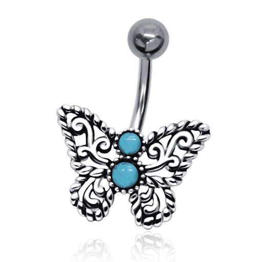 Alle gegevens bekijkenJoy|S - Navel piercing - Vlinder geoxideerd Sterling zilver 925 - Turquoise blauw - staaf 316L Chirurgisch staal
