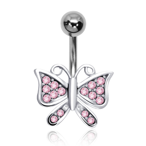 Alle gegevens bekijkenJoy|S - Navel piercing - vlinder Sterling zilver 925 - staaf 316L Chirurgisch staal - roze kristal