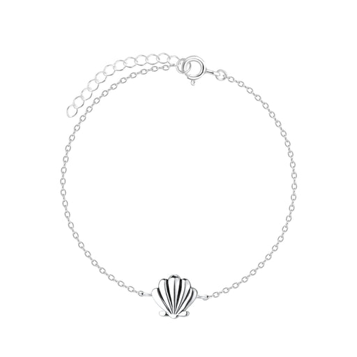 Sterling zilver 925 schelp armband. Materiaal: 925 sterling zilver Afwerking: Geoxideerd, E-coat Afmeting schelp (massief): 11 mm x 10 mm Lengte ar...