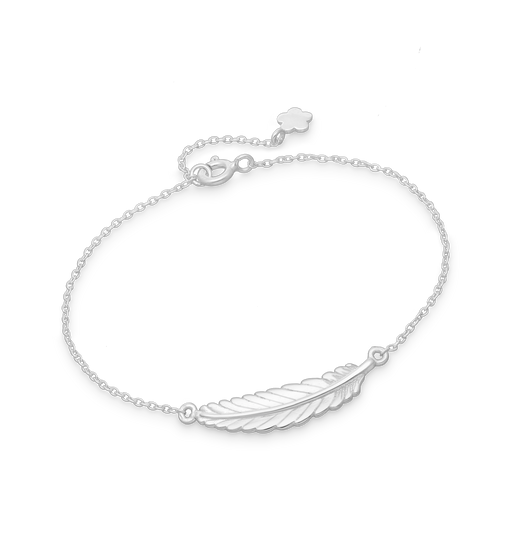 Alle gegevens bekijkenJoy|S - Zilveren armband - veer (27 x 5 mm) - bloem - karabijn sluiting - 20 cm met extra oogje op 17.5 cm
