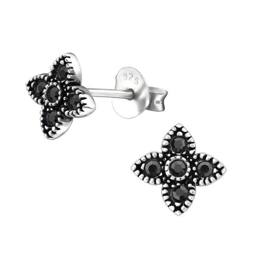 Sterling zilver 925 Bali ster oorbellen met kristal zwart. Materiaal : 925 sterling zilver Afwerking : Geoxideerd, E-coat Grootte: 7 mm x 7 mm Ver...