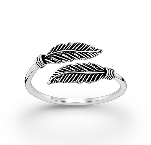 Alle gegevens bekijkenJoy|S - Zilveren Bali veer ring - verstelbaar (maat: zie omschrijving) - geoxideerd - veren aanschuifring
