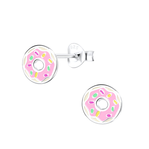 Alle gegevens bekijkenJoy|S - Zilveren donut oorbellen - 8 mm - roze met gekleurde spikkeltjes
