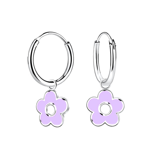 Alle gegevens bekijkenJoy|S - Zilveren bloem bedel oorbellen - daisy oorringen - lila paars - kinderoorbellen