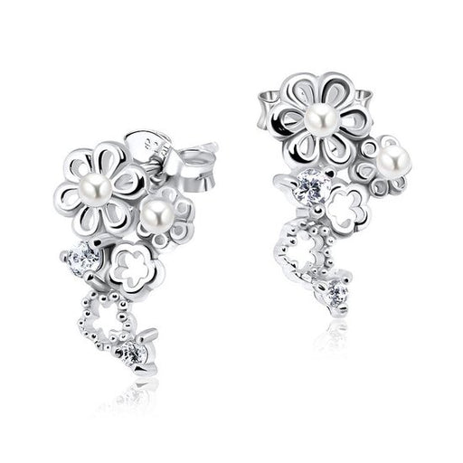Sterling zilver 925 elegante classic bloem "Daisy" oorbellen met 2 pareltjes en 2 kristallen. Materiaal: 925 Sterling Zilver Bewerking: E-coat Gro...