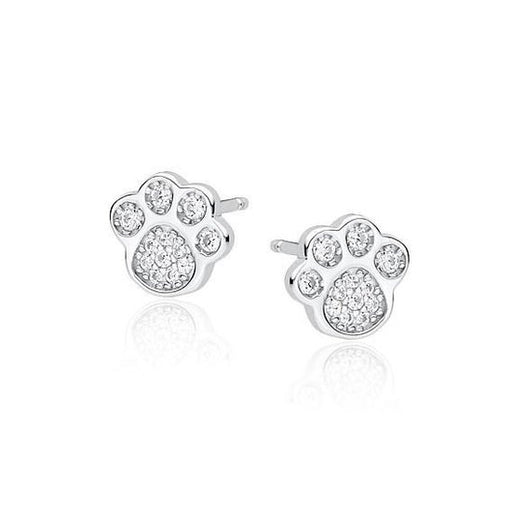 Sterling zilver 925 dierenpoot oorbellen met zirkonia Afmeting: 7.5 mm x 8 mm Materiaal: Sterling zilver 925 Afwerking: Rhodium Steensoort: Zirkon...