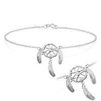 Alle gegevens bekijkenJoy|S - Zilveren dromenvanger bedel enkelband met veren