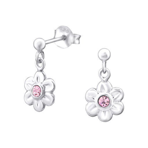 Alle gegevens bekijkenJoy|S - Zilveren bloem bedel oorbellen - zilver met roze kristal - kinderoorbellen