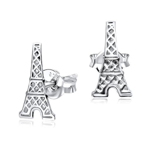Sterling zilver 925 Eiffeltoren oorbellen - oorknoppen. Afmeting: 4 mm x 7 mm Materiaal: Sterling zilver 925 Afwerking: E- coat Verpakt in ...