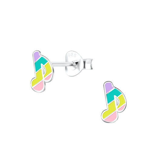 Alle gegevens bekijkenJoy|S - Zilveren muzieknoot oorbellen - 5 x 7 mm - multicolor gestreept - muziek noot oorknoppen - kinderoorbellen