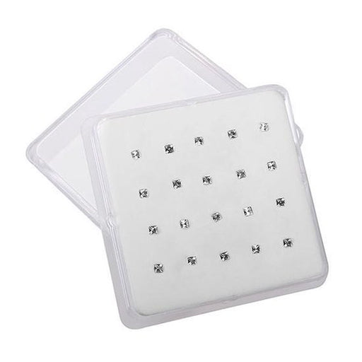 Alle gegevens bekijkenJoy|S - Zilveren neuspiercing set - 20 stuks - 2 mm - vierkant - zirkonia