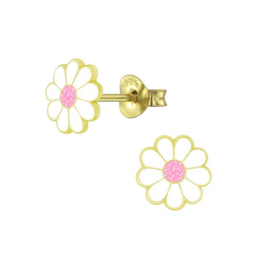 Sterling zilver 925 Madeliefje bloem oorbellen - goudplating wit roze met glittertjes Materiaal : 925 sterling zilver Plating : Gold plated, E-coat...