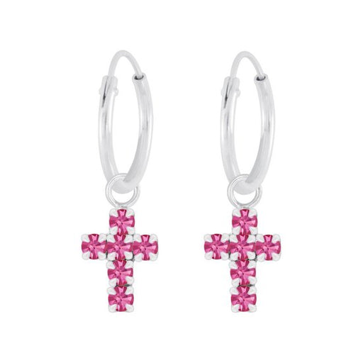 Sterling zilver 925 kruisje bedel oorringen kristal roze. Materiaal : 925 sterling zilver Afwerking : E-coat Doorsnede oorring: 1.2 cm Grootte krui...
