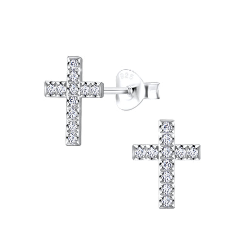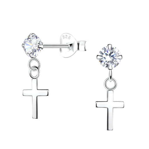 Sterling zilver 925 kruisje bedel oorbellen met zirkonia. Afmeting: 5 mm x 15 mm Materiaal: Sterling zilver 925 Afwerking: E-coat Verpakt i...