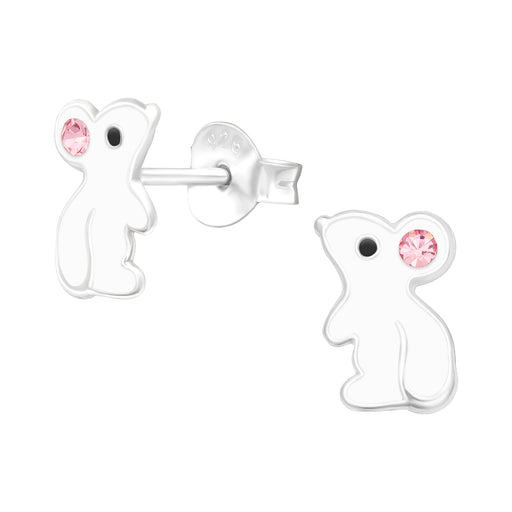Sterling zilver 925 muis oorbellen - wit met roze kristal. Afmeting: 7 mm x 9 mm Materiaal: Sterling zilver 925 Afwerking: E- coat Steensoort: Kri...