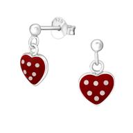 Sterling zilver 925 oorbellen hart hanger rood met witte stippen. Afmeting: 7 mm x 13 mm Materiaal: Sterling zilver 925 Afwerking: E-coat Verpakt i...