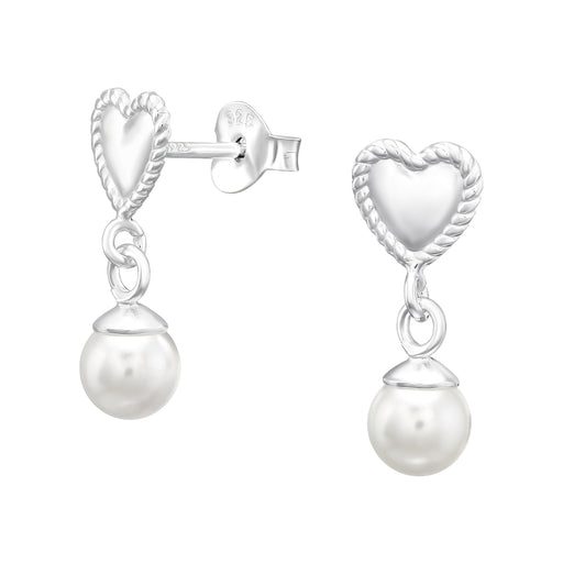 Sterling zilver 925 hartjes met een parel bedel oorknoppen. Materiaal: Sterling zilver 925 Afwerking: E - coat Afmeting hartje : 6.5 mm x 6 mm - pa...