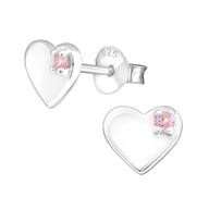 Sterling zilver 925 hartje kinderoorbellen. Design grootte: 4 mm x 4 mm Bewerking: E-Coat Materiaal: Sterling zilver 925 Steensoort: Kristal - roze...