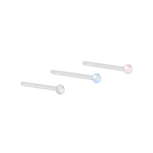 Sterling zilver 925 neuspiercing set pastel kristal Afmeting per knopje: 2 x 2 mm Materiaal: Sterling zilver 925 Afwerking: E-coat Verpakt in een ...