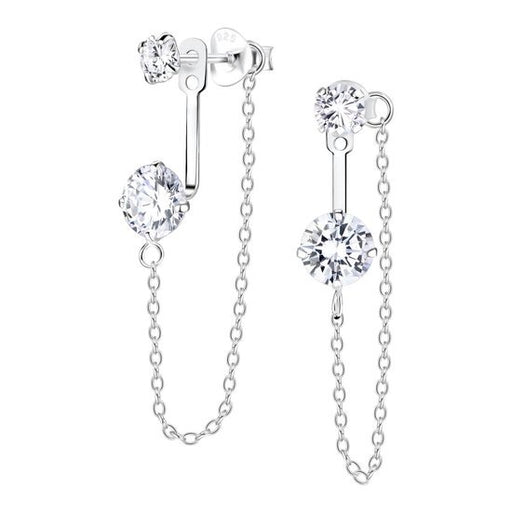 Sterling zilver 925 ear jackets met kettinkje en 2 ronde zirkonia's. Design Size: 6 mm x 30 mm Materiaal: Sterling Zilver 925 Afwerking: E-Coat Ste...
