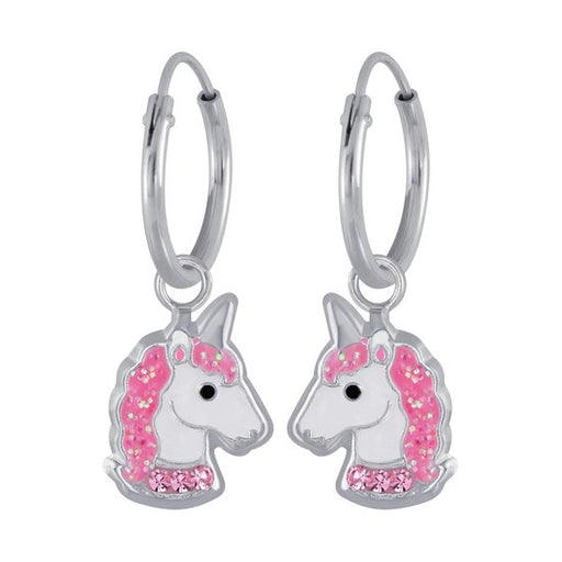 Sterling zilver 925 unicorn bedel oorbellen met roze kristal Design grootte bedel: 7 x 12 mm Doorsnede oorring: 12 mm Materiaal: Sterling zilver 92...