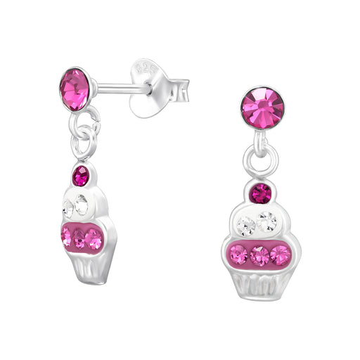 Sterling zilver 925 cupcake bedel oorbellen - zilver met roze en wit kristal. Lengte: 1.6 cm - afmeting bedel: 6.5 mm x 9.5 mm Bewerking: E-Coat Ma...