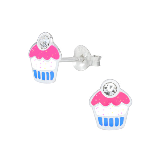 Sterling zilver 925 oorbellen cupcake met kristal. Afmeting: 7 mm x 9 mm Materiaal: Sterling zilver 925 Afwerking: E-coat Verpakt in een bijbehore...