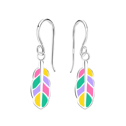 Alle gegevens bekijkenJoy|S - Zilveren veer bedel oorbellen - veertje multicolor - oorhangers - kinderoorbellen