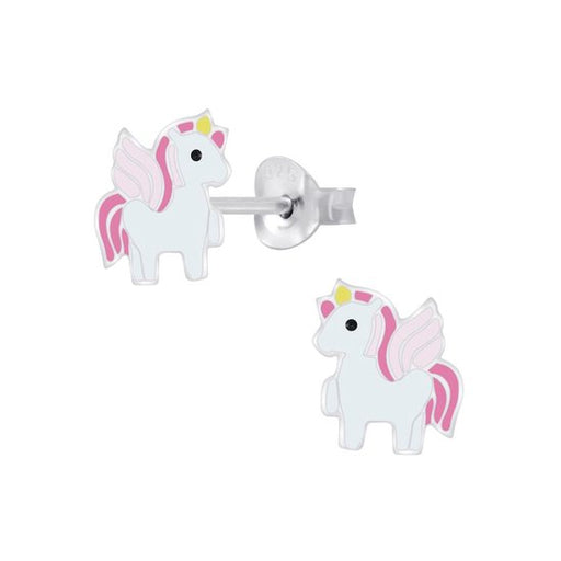 Sterling zilver 925 Eenhoorn oorbellen unicorn paardje met vleugeltjes. Design grootte: 7 x 8 mm Materiaal: Sterling zilver 925 Bewerking: E-Coat ...