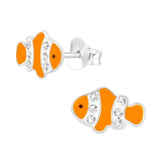 Alle gegevens bekijkenJoy|S - Zilveren vis oorbellen - clownvis - 11 x 7 mm - kristal - nemo - kinderoorbellen