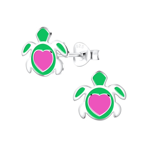Sterling zilver 925 schildpad oorbellen - groen - met glitter hartje. Afmeting: 7 mm x 7 mm Materiaal: Sterling zilver 925 Afwerking: E- coat Verp...