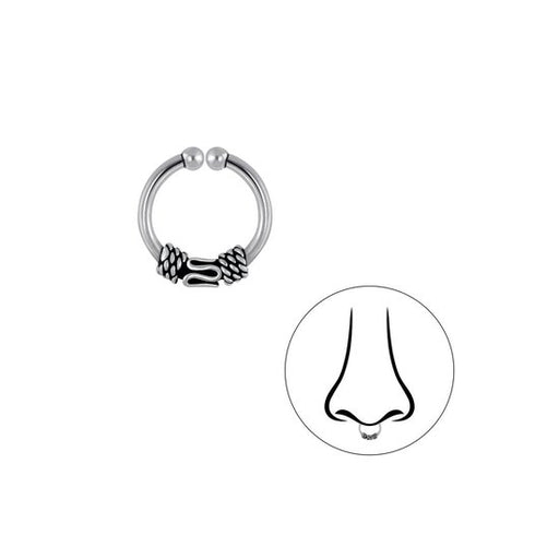 Sterling zilver 925 Septum clip neuspiercing Bali Materiaal: 925 sterling zilver Afwerking: Geoxideerd, E-coat Doorsnede: 1.2 cm Verpakt in een b...