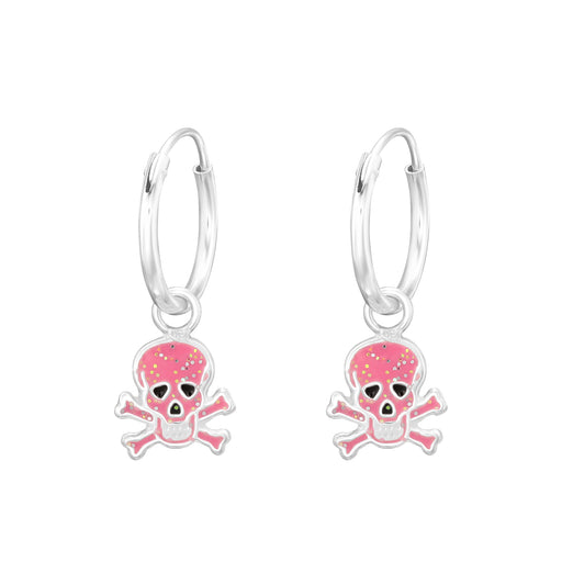 Sterling zilver 925 skull bedel oorbellen - oorringen - roze met glitter. Afmeting skull bedel: 7 mm x 7 mm Diameter oorring: 12 mm Materiaal: Ste...