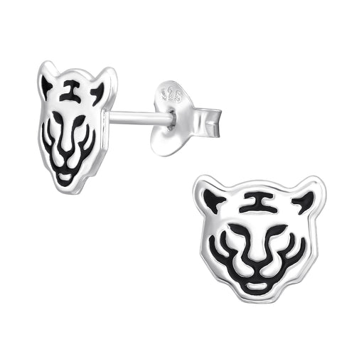 Sterling zilver 925 tijger oorbellen - zilver met zwarte accentjes. Afmeting: 8.5 mm x 8 mm Bewerking: E-Coat Materiaal: Sterling zilver 925 Verpa...