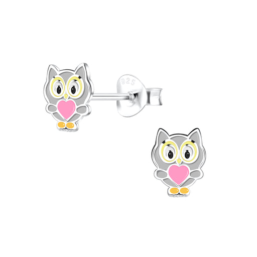 Alle gegevens bekijkenJoy|S - Zilveren uil oorbellen - met roze hartje - 6 x 7 mm oorknoppen - kinderoorbellen