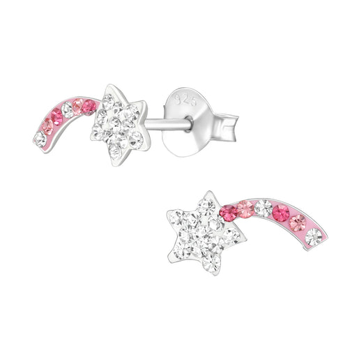 Alle gegevens bekijkenJoy|S - Zilveren vallende ster oorbellen - roze wit kristal - 12 x 6 mm